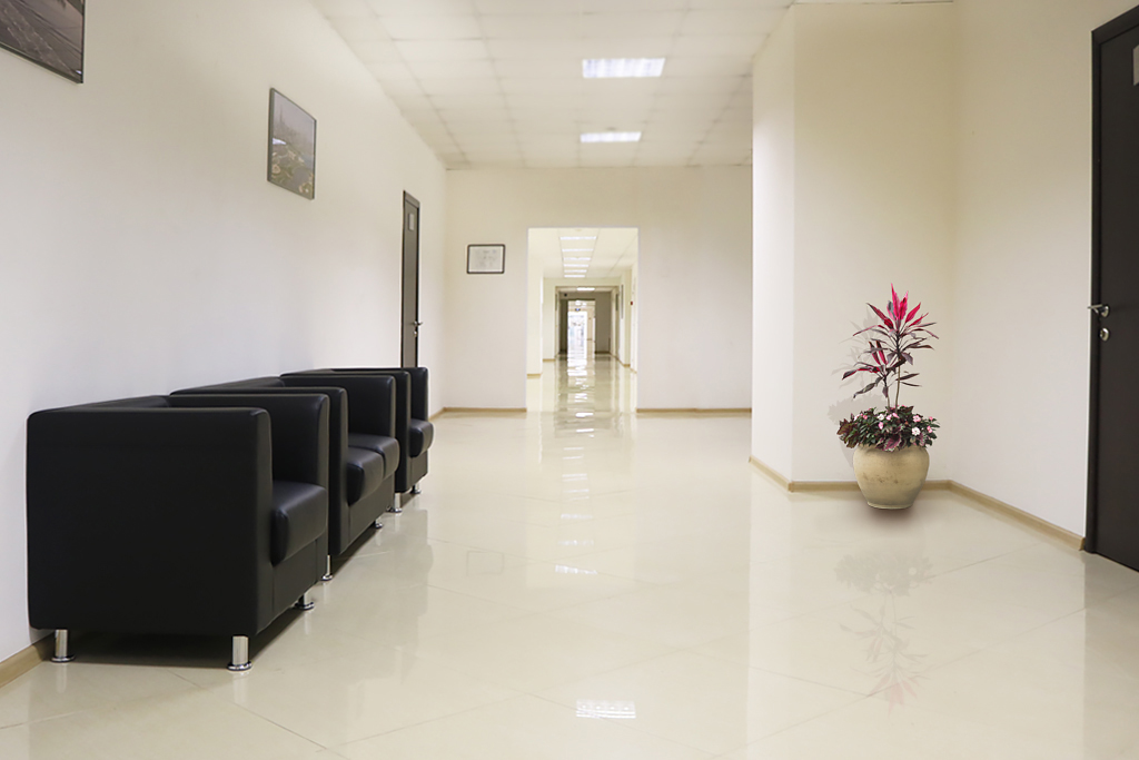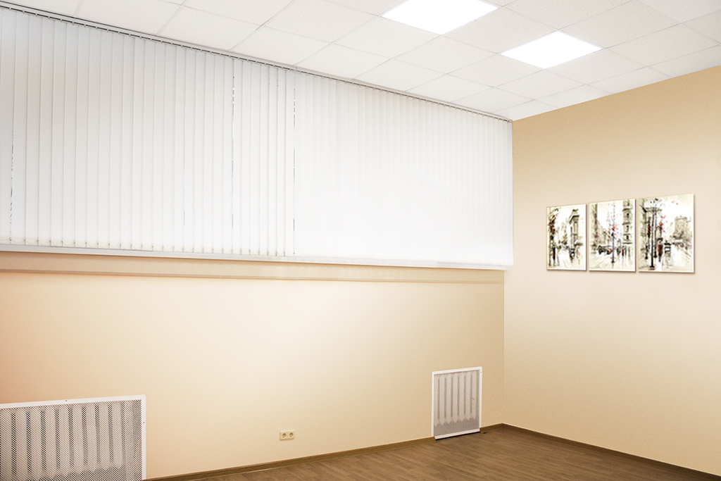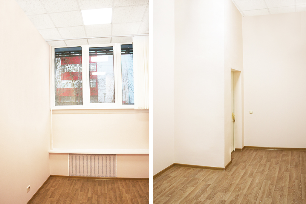 Отделка: ламинат, стены окрашены в бежевый цвет, армстронг