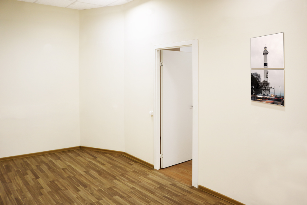 Отделка: ламинат, стены окрашены в бежевый цвет, армстронг