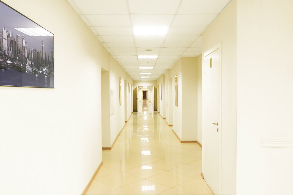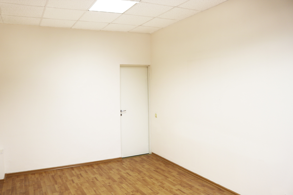 Отделка: ламинат, стены окрашены в бежевый цвет, армстронг