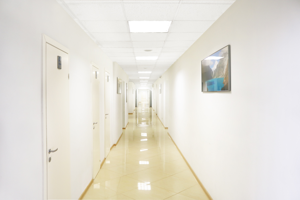 Отделка: ламинат, стены окрашены в бежевый цвет, армстронг